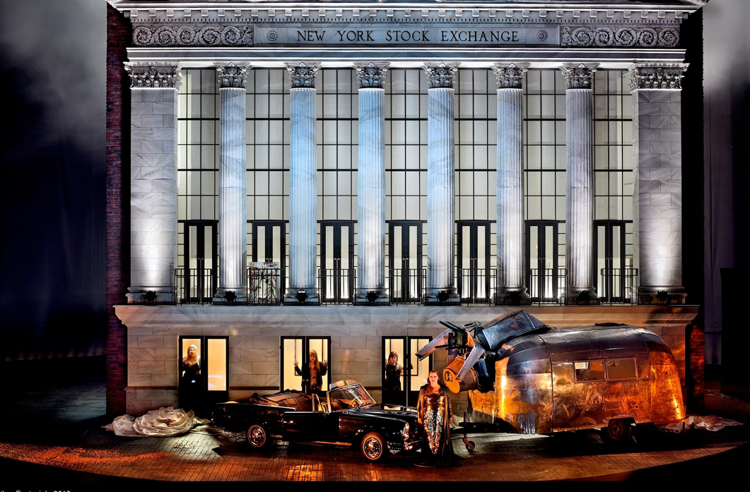 Unter der Regie von Frank Castorf und nach dem Bühnenbildentwurf von Aleksandar Denic, wurden im „Siegfried“ vielfältige Motive realisiert, beispielsweise der Berliner Alexanderplatz mit einer funktionsfähigen, maßstabsgetreuen Nachbildung der Weltzeituhr oder die Darstellung eines kinetischen Fernsehturmfußes. Die Rückseite zeigt eine massive Felswand mit einer kommunistischen Karikatur des US-amerikanischen Mount Rushmore. In der „Götterdämmerung“ trifft als Szenerie das originalgetreue Portal der New Yorker Börse im Maßstab 1:3 auf eine Berliner Hinterhofwelt, sowie die 12 Meter hohe Neon-Reklamewand „Plaste und Elaste aus Schkopau“, ein Relikt aus DDR Zeiten.