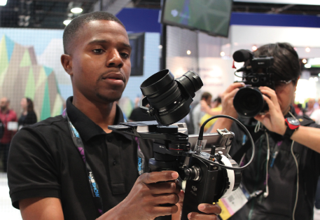 Großes Besucherinteresse zur NAB 2016 verzeichnete das chinesische Unternehmen DJI in Halle 1. 2006 in Shenzhen gegründet, entwickelt es innovative Kameratechnologien wie Video-Drohnen, Minikameras und Stabilisierungssysteme. In Las Vegas zeigte das Unternehmen unter anderem mit Osmo ein System bestehend aus Handheld-Gimbal mit 3-Achsen-Aufhängung und 4k-Kamera (4.096 x 2.160, 24/25p) mit dem professionelle bewegungsstabilisierte Filmaufnahmen möglich sind. Osmo ist voll kompatibel zu den DJI Zenmuse X3 und X5- ebenso wie den neuen DJI Zenmuse X5R Pro und X5R RAW Micro 4/3“-Kameras mit Wechseloptik und Remote-Control-Fokus. Die Videobitraten der seit September 2015 auf dem Markt befindlichen X5R-Modelle liegen bei maximal 2,4 Gbit/s. Sie verfügen auch über einen neuen D-LOG Modus für bessere Farbkorrektur-Optionen in der Postproduktion. Neben 4k-Auflösung bieten die Zenmuse-Kameras 1080p- und 720p-Option mit Framrates wie 24/25/30/60 sowie 120 Frames für Superslomo-Aufnahmen. Pan- und Tilt-Kontrolle der Kameras ist über einen Joystick am Osmo-Griff möglich. Eine spezielle App hilft bei der Bedienung der Kamera- und Gimbal-Settings via Smartphone oder Tablet. Mit seinem umfangreichen Zubehör lässt sich das Osmo-System laut DJI leicht in jede Videoproduktion einbauen.
