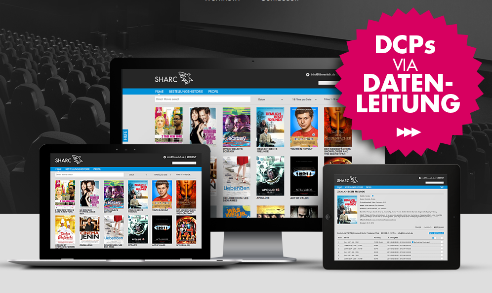 Mittels des bestehenden DCP-Portals SHARC und des neuen SHARC Downloadclients erhalten die Kinobetreiber ihre DCPs direkt über die eigene Breitbandverbindung. Diese Option besteht alternativ zur Festplattendistribution. Das Kino behält dabei die Kontrolle über laufende Downloads und kann beispielsweise verfügbare Bandbreiten zuordnen. Das Angebot richtet sich in der ersten Phase an ausgewählte Kinos der D-A-CH Region und wird sukzessive auf alle Kinobetreiber ausgedehnt.