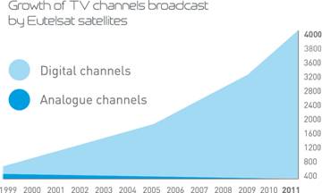 Eutelsat sieht in den kontinuierlich steigenden Kunden-Zahlen einen Beleg für die anhaltende Attraktivität der Eutelsat-TV-Positionen. Allein in den letzten fünf Jahren 2.000 verzeichnete man zusätzliche TV-Sender.