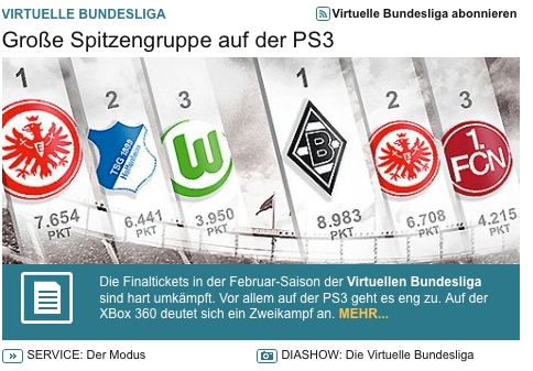 Electronic Arts, unterwegs auf dem Gebiet der interaktiven Unterhaltungsindustrie, und Constantin Sport Marketing haben dazu eine Medienpartnerschaft beschlossen. Demnach werde die „Virtuelle Bundesliga, ein Onlinespielmodus im populären Fußball-Videospiel „EA Sports FIFA 14“, ab sofort auf verschiedenen Plattformen von Sport1 eingebunden. Die Virtuelle Bundesliga ist ein offizieller Wettbewerb der DFL Deutschen Fußball Liga.