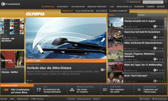Neben den exzellenten Zuschauerquoten bei den Live-Übertragungen entwickelte sich vom ersten Olympiatag an das neuartige ZDFonline-Angebot mit bis zu sechs parallel gesendeten Livestreams zu einem außerordentlichen Erfolg. Mit bisher (Stand: 8. August) 11,16 Millionen Sichtungen wurde das Olympia-Livestream-Angebot unerwartet stark genutzt und stieß auf große Akzeptanz beim Publikum. Genauso wie die Leistungen von ZDF undARD bei der Präsentation der Wettkämpfe, wie eine repräsentative Umfrage des IFAK-Instituts ergab: 73 Prozent der befragten Olympiazuschauer gaben den Sendern die Bestnoten „sehr gut“ oder „gut“. (8/12)