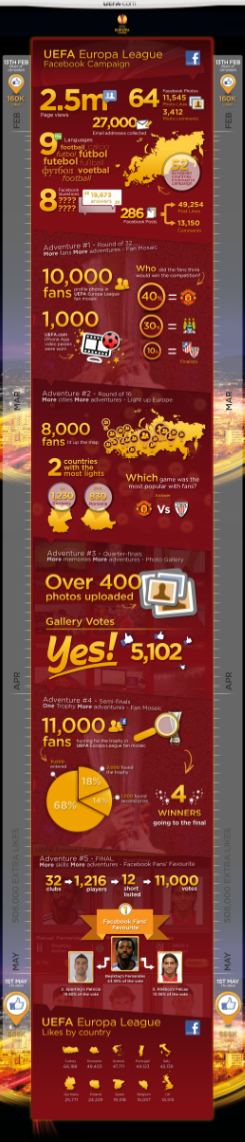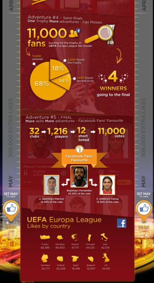 Durch die neue Strategie konnte der Traffic auf der Webseite von UEFA.com im Vergleich zum Vorjahr um 12 Prozent erhöht werden. 4,8 Millionen Tweets wurden im Bezug zu dem Finale gezählt und die UEFA Champions League Page konnte 52.000 neue Facebook Fans generieren. Um den Twitter Stream zu analysieren wurde TweetReach verwand um alle mit dem Finale im Bezug stehenden Tweets erkennbar zu machen. Nach Drogbas Ausgleichstreffer gingen in wenigen Minuten mehr als 100.000 Tweets zu dem Thema ein. Ausserdem haben sich im Vorfeld des Finales 300.000 Menschen das Ultimate Champions Match, das live über UEFA.com, YouTube und Google+ ausgestrahlt wurde, angesehen.