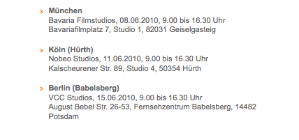08.06.2010, 9.00 – 16.30 Uhr, Bavaria Filmstudio, München