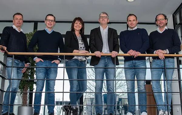 Foto: Das neue ComLine Management v. l. n. r.: Harald Rapp (Geschäftsführer), Oliver Bartsch (Director Volume), Anja Sobottka (Geschäftsführerin), Stephan Leonhard (Director Value), Tim Daumann (Head of Audio/Video), Richard Gäbel (Geschäftsführer)
