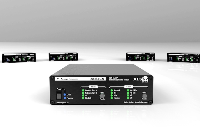 Der Flexiverter von Appsys ist in fünf unterschiedlichen Ausführungen erhältlich, die jeweils entweder AES3 (16×16 Kanäle), AES50 (96×96 Kanäle), AES67/ST2110 (64×64 Kanäle), Dante (64×64 Kanäle) oder MADI (128×128 Kanäle) unterstützen. Allen Geräten gemeinsam sind ein Flexilink Port zur Verbindung mit einer weiteren Flexiverter oder Mulitiverter Einheit, eine USB-Schnittstelle für Firmware-Updates und ein Netzteilanschluss. Jede Variante des Appsys Flexiverter lässt sich über den Aux-Port mit Erweiterungskarten bestücken. Diese stellen zusätzliche digitale Schnittstellen bereit und machen das Gerät zum praktischen mobilen Formatwandler. Dabei stehen ADAT (16×16 Kanäle), AES3 (8×8 Kanäle), MADI optisch (64×64 Kanäle), MADI coaxial (64×64 Kanäle) und Wordclock-Karten zur Verfügung.