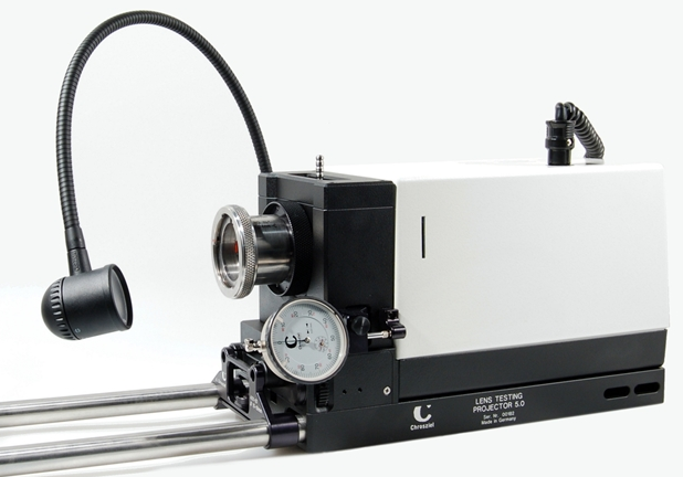 Bei der NAB vorgeführt wird zudem eine weiter entwickelte Version des Testprojektors MK 5 (Foto). So verfügt das Modell 2013 des Projektors über einen verlängerten und erweiterten Schlitten für den Halter des Testdias. Damit lasse sich das Auflagemaß noch genauer bestimmen, heißt es in der Produktbeschreibung des Herstellers. Auch wurde die Pupille erweitert, um ein helleres und größeres Bild zu erhalten. Das Frontelement des Projektors mit dem Testdiahalter wird gefertigt mit Toleranzen von wenigen Tausendstel Millimetern. Mit dem Projektor lassen sich daher Messungen im Bereich weniger Hundertstel Millimeter exakt durchführen.
