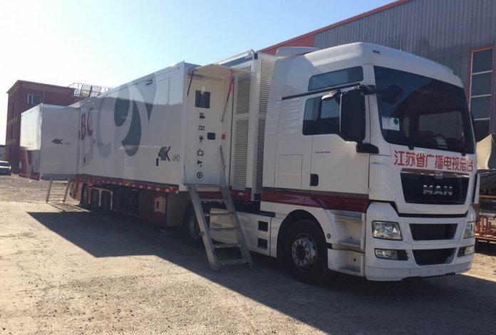 2015 beginnt eine neue TV-Ära in China. Die Chinesische Jiangsu Broadcast Corporation ist das erste Unternehmen des Landes, das über einen 4K Ü-Wagen verfügt. Der JSBC 4K Ü-Wagen ist ein 24 Kamera trailer-basiertes Fahrzeug mit zweiseitigem Auszug der vollständig in 4K produzieren kann. Der Innenbereich bietet genügend Platz für bis zu 29 Arbeitsplätze. Insgesamt kann der Ü-Wagen mit 16 HD-Kameras, vier 4K-Kameras plus vier Wireless-Kameras betrieben werden. Ü-Wagen Bauer ASGB und Sony China Professional Systems Group sowie System Integrator NDT Group arbeiteten gemeinsam an diesem Projekt und stellten Jiangsu TV ein hochmodernes Produktionsmittel zur Verfügung, das über die neueste 4K-Technik verfügt. JSBC ist nun bestens für zukünftige Produktionen während und nach der vollendeten Übergangszeit zu 4K gerüstet.