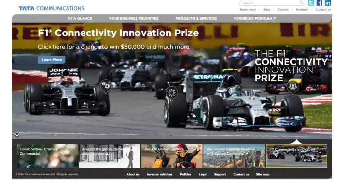 Im Februar 2012 haben Tata Communications und FOM eine Vereonbarung abgeschlossen, die die Vernetzung alle Standorte der Formel 1 weltweit umfasst. Tata Communications ist auch für das Hosting und das Inhaltemanagement der WWW-Seite Formula1.com zuständig. (9/14)