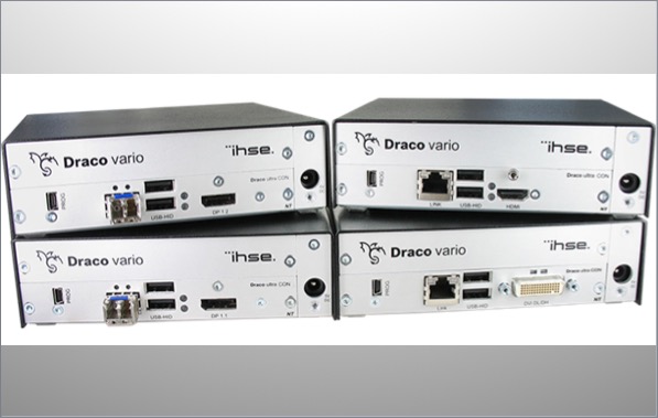 Nach dem erfolgreichen Vorreiter Draco ultra DisplayPort-Extender, der sich bereits in zahlreichen sicherheitskritischen Anwendungen bewähren konnte, bietet IHSE ab sofort eine ganze Reihe von KVM-Extendern der neuen Draco ultra-Generation. Diese ermöglichen den Betrieb eines entfernten Arbeitsplatzes mit Tastatur, Maus und je nach Modell –DisplayPort 1.1/1.2, DVI Dual-Head und DVI Dual Link-Monitor. In Kürze wird diese Reihe noch ergänzt um eine Version für HDMI 2.0.