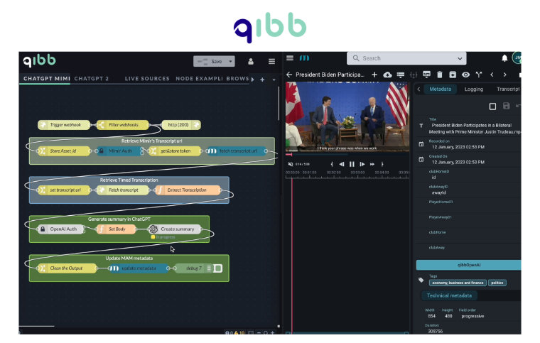 qibb hat jetzt die volle Integration von ChatGPT. Die Entwickler von qibb haben die KI-Möglichkeiten des Chatbots von OpenAI speziell auf die Bedürfnisse von Medienschaffenden ausgerichtet. Mit ChatGPT als neue Option im Flow Editor können nun automatisch Zusammenfassungen, Schlagwörter und ganze Artikel für Multimediainhalte erstellt werden. Dadurch wird die Produktivität und Variabilität von Cloud-basierten Arbeitsabläufen mit qibb weiter erhöht.
