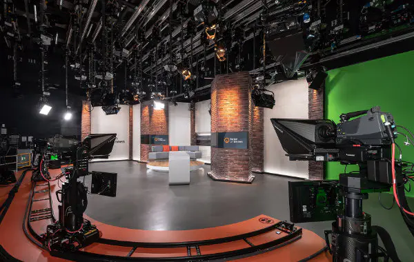 Das neue TV-Studio hat einen realen und einen virtuellen Bereich. Um Schalten,