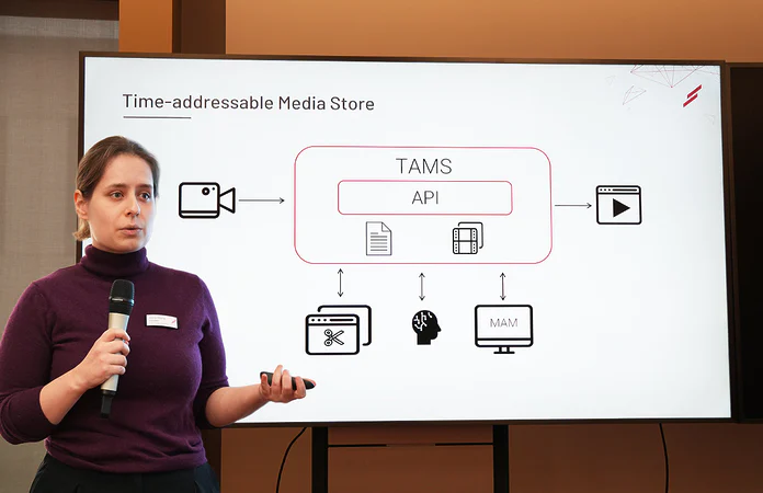 Auf dem Technologie-Event RoadtrIP von LOGIC media solutions im MACE-Konferenzzentrum in Unterföhring präsentierte Anna-Maria Zeußel ein Thema, das für viele Besucher noch Neuland war – und gleichzeitig ein enormes Potenzial für die Medienproduktion der Zukunft birgt: TAMS, der Time Addressable Media Store. Das von BBC R&D entwickelte Konzept verspricht nicht weniger als eine strukturelle Neudefinition digitaler Speicher- und Verarbeitungsprozesse in der Medienproduktion – Cloud-native, referenzbasiert und modular integrierbar.