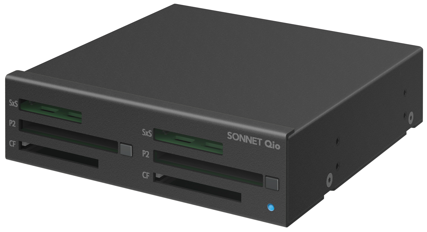 Mit dem neuen Mitglied der erfolgreichen Qio-Familie stellt Sonnet eine weitere kosteneffiziente und ultraschnelle Alternative zu herkömmlichen Kartenlesern für Videoprofis und Studios vor. Qio CF4 ist das weltweit erste Lesegerät mit Einschüben für vier Compact-Flash-Karten. Über das integrierte 2-Port 6Gb/s eSATA Interface kann es an externe Speichergeräte angeschlossen werden. Qio CF4 sorgt für einen effizienten Workflow: Daten von bis zu vier CF-Karten, wie sie mit professionellen HD-Videokameras von RED und Canon sowie DSLR-Kameras von Canon und Nikon eingesetzt werden, können mit einer aggregierten Bandbreite von bis zu 400 MB/sec an Desktop-Computer und bis zu 200 MB/sec an Notebooks übertragen werden. Qio CF4 ist Mac OSX- und Windows-kompatibel und kann wahlweise mit PCIe 2.0 oder ExpressCard/34-Adapter angeschlossen werden.