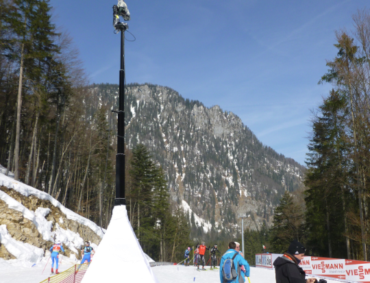 In exponierter Lage, am „Schießplatzberg“ , hatte MAT zur Biathlon WM 2012 die original MAT-TOWERCAM-XL positioniert. Durch die auf 10 Meter hoch teleskopierende Kamerasäule in Kombination mit einem Mini-Mote, konnte mit eleganter Bewegung und einem herrlichen Panoramablick von oben herab der Anstieg der Sportler beobachtet werden – eine Perspektive, die aus einer flachen Position heraus unmöglich gewesen wäre.