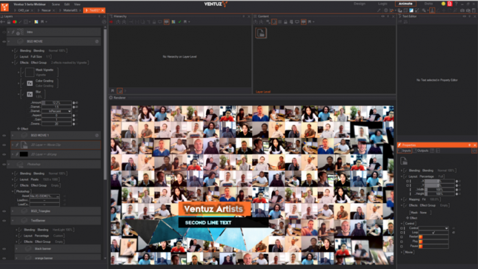 Mit Ventuz 5 bringt Ventuz nach eigenen Angaben eine Vielzahl an Verbesserungen seiner Echtzeitgrafiksoftware auf den Markt, die auf der NAB 2016 erstmals in ihrer finalen Form präsentiert werden. Ventuz Technology wird dazu voll integrierte Broadcast-Grafik-Lösungen auf dem eigenen Stand sowie auf Partnerständen installieren. Das Motto der Software ist „Made for the Artist“ – dementsprechend bietet Ventuz 5 große Veränderungen in der Handhabung der Software, die sich an Industriestandards orientieren. Zu den Neuerungen zählen ein auf Layern basierendes 3D-Compositing sowie eine Auswahl gängiger Blending Modes und Effekte.