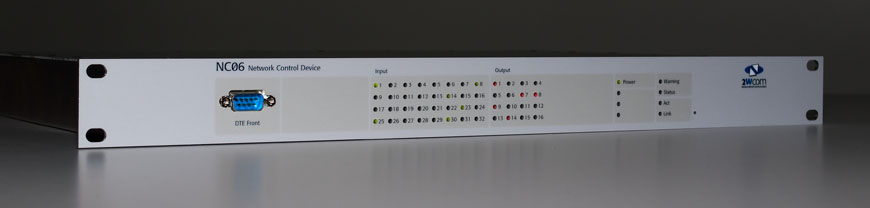 Der NC06 verfügt über 32 Optokoppler-Eingänge. Diese können je nach Bedarf als potenzialfreie oder nicht potenzialfreie Variante verwendet werden. Wird an einem der Eingänge ein Pegelwechsel detektiert, kann die Überwachungszentrale bzw. der Techniker unmittelbar per SNMP-Trap oder E-Mail benachrichtigt werden. Weiterhin kann automatisch oder per SNMP-Befehl eines der 16 zur Verfügung stehenden Relais geschaltet werden. Durch die Ausführung der Ausgänge als Relais kann z. B. ein dahinter angeschlossener Reserve-Sender für den Notbetrieb aktiviert werden.