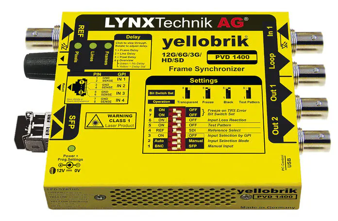 LYNX Technik hat den yellobrik PVD 1400 12G-SDI Frame Synchronizer veröffentlicht. Dieses Gerät synchronisiert unterschiedliche Signale in Broadcast-, Postproduktions- und AV-Umgebungen und ermöglicht die Verarbeitung verschiedener Auflösungen und Bildraten.